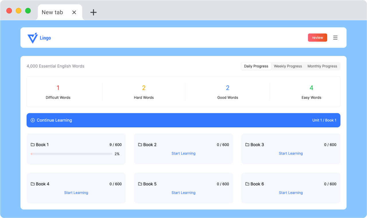 لینگو با ارائه گزارشهای دورهای، به کاربران امکان میدهد تا پیشرفت خود را دنبال کنند و نقاط ضعف خود را شناسایی کنند.